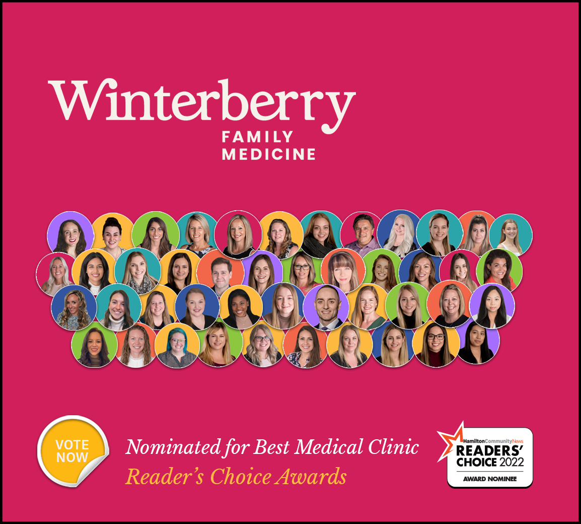 Winterberry is once again nominated as Best Medical Clinic in the Hamilton Readers’ Choice Awards. As I do each year, I dedicate this well-deserved nomination to our team. The award winning care we deliver is due to their efforts and skill. To our team I say thank you for helping us be recognized as one of the best clinics in the city. Together we all make Winterberry the special place it is!
