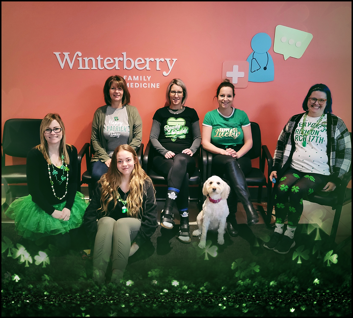 At Winterberry we love to celebrate holidays and bring an extra dash of cheer and spirit to the clinic. This past St. Patrick’s day we turned the clinic green (in a good way!). Team members sported their favourite greens and spread some extra joy and fun to patients and co-workers.