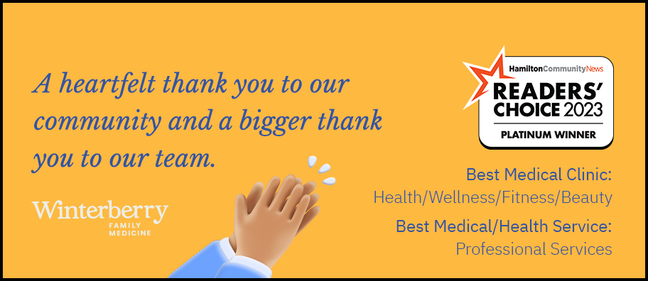 This website has been developed by Winterberry Family Medicine for information and patient-booking purposes only. This website does not provide specific medical advice and is not a substitute for professional medical advice, diagnosis, or treatment. If you have or suspect you have a health problem, you should contact your family doctor for consultation, diagnosis, and treatment. If you have or suspect you are experiencing a health emergency, please promptly visit the Hospital Emergency Department nearest you.